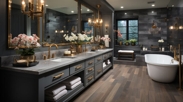 A modern bathroom creates a more relaxing, spa-like experience with updated finishes, lighting, and fixtures.